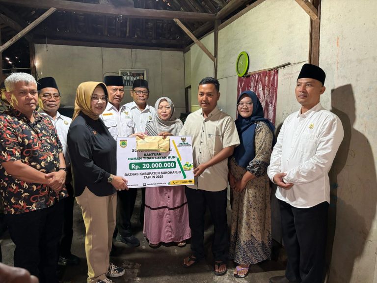 SUKOHARJO – Badan Amil Zakat Nasional (Baznas) Kabupaten Sukoharjo menyalurkan bantuan program Rumah Tidak Layak Huni (RTLH) kepada 16 penerima manfaat dari tiga kecamatan, Selasa (13/5/2025). Bantuan senilai Rp180 juta ini diserahkan secara simbolis oleh Bupati Sukoharjo, Etik Suryani.