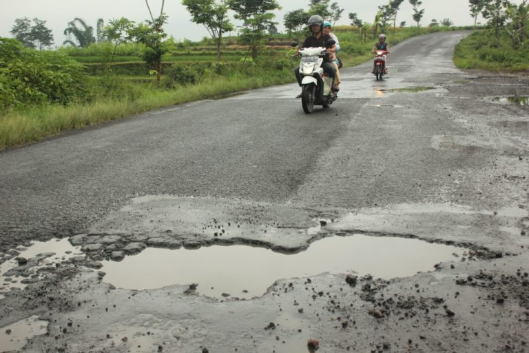 TEMANGGUNG – Intensitas hujan lebat yang terjadi beberapa bulan terakhir menyebabkan kerusakan aspal jalan di sejumlah titik di Kabupaten Temanggung. Selain itu, kerusakan jalan juga disebabkan oleh tonase kendaraan yang berlebih.
