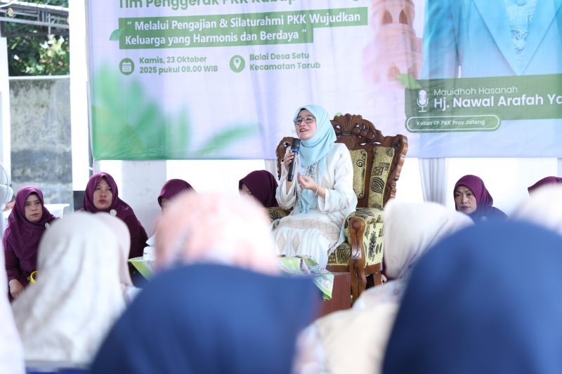 Hal tersebut diungkapkan Ketua TP PKK Provinsi Jateng, Nawal Arafah Yasin, seusai memberikan Mauidhoh Hasanah dalam kegiatan Silaturahmi TP PKK Kabupaten Tegal, di Balai Desa Setu, Kecamatan Tarub, Kamis (23/10/2025).