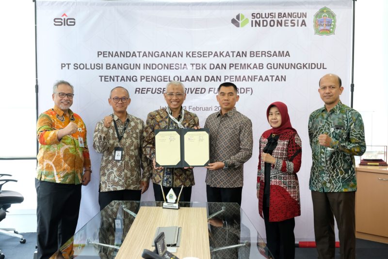 Jakarta – Mengawali tahun 2025, PT Solusi Bangun Indonesia Tbk (SBI), yang merupakan anak usaha SIG, memperluas kemitraan dengan pemerintah daerah dalam pemanfaatan refuse-derived fuel (RDF), melalui penandatanganan MoU dengan Pemerintah Kabupaten (Pemkab) Gunungkidul. Penandatanganan MoU dilakukan oleh Bupati Gunungkidul, Suryananta dan Direktur Manufacturing SBI, Soni Asrul Sani di Jakarta, 3 Februari 2025 dan turut disaksikan oleh Direktur Keuangan & Manajemen Risiko SBI, Ony Suprihartono, Asisten Pemerintahan dan Kesra Setda Pemkab Gunungkidul, Dewi Irawaty beserta jajaran Pemkab Gunungkidul.