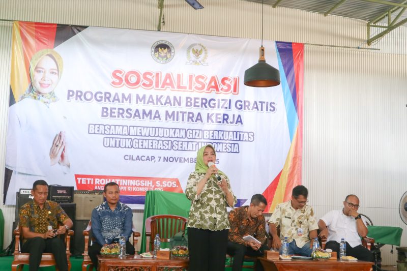 Sosialisasi dengan mengangkat tema bersama mewujudkan generasi sehat Indonesia ini dihadiri oleh Anggota Komisi IX DPR RI, Teti Rohatiningsih, Kepala SPPG Kabupaten Cilacap, Farizal Surno Suwito, serta Tenaga Ahli Direktorat Promosi Badan Gizi Nasional, Teguh Suparngadi.