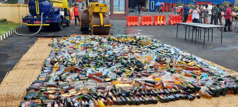 Zonajateng.id – Untuk menciptakan kondisi aman dan tertib menjelang perayaan Natal dan tahun baru (Nataru) 2024, ribuan liter minuman keras (miras) dalam kemasan botol dimusnahkan, di Halaman Mapolres Jepara, Jumat (20/12/2024).